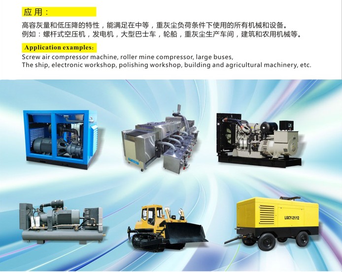 灵活托架系统,便于安装与维护; 无需工具即可更换滤芯; 全面兼容Atlas与Mann的标准。